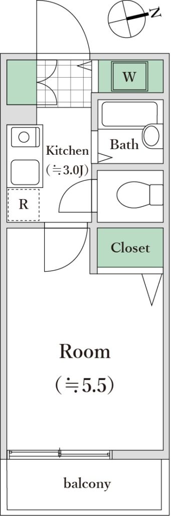 間取り:1K(キッチン3畳 洋室5.5畳)