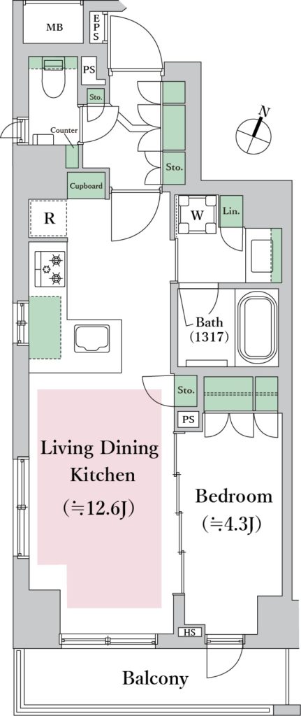 間取りは1LDK住戸が中心で、全戸南向きのため、採光性に優れた明るい住空間となっております。
