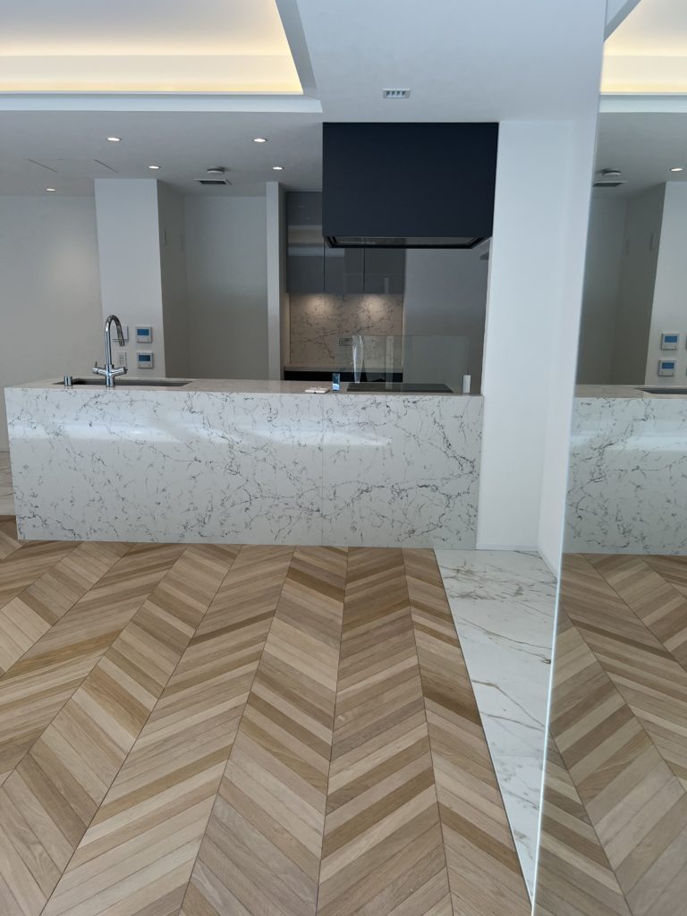 4.6畳と存在感のある対面式のオープンキッチンは、広々として高級感のあるデザインです。