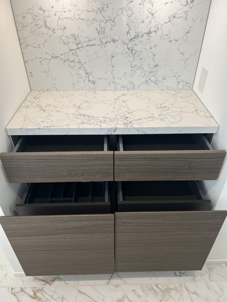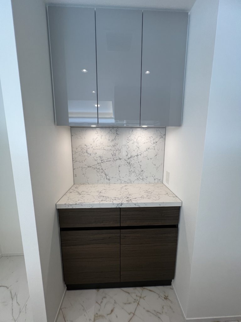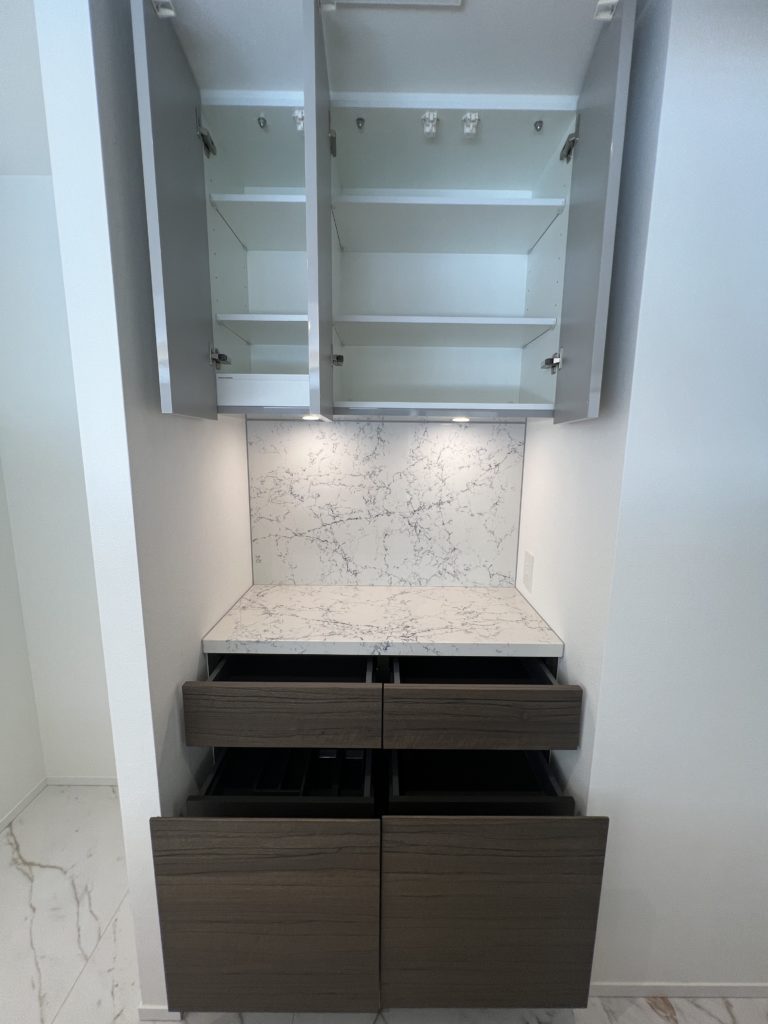 収納力の高いバックカウンターもあるため調理家電の収納も可能で、キッチンをスタイリッシュにお使いいただけます。