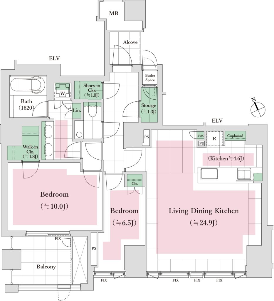 間取り:2LDK(間取り内訳 LDK29.5畳/洋室10.0畳/洋室6.5畳)