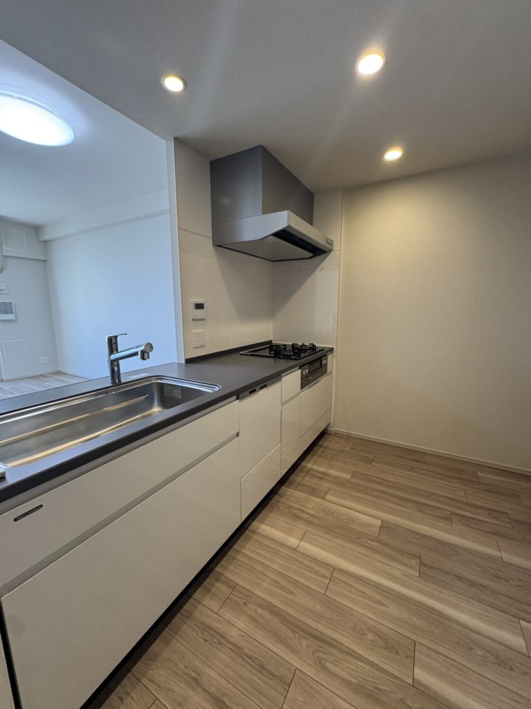同時調理に便利な3口コンロで、収納スペースも十分確保されております。