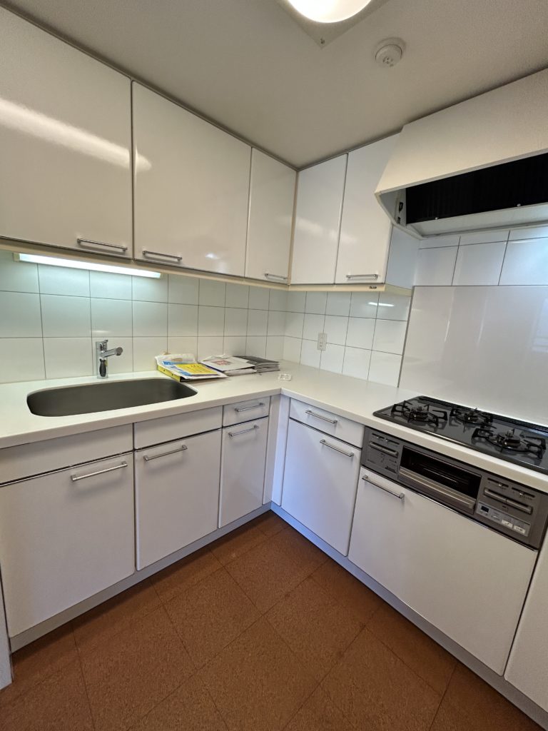 キッチンはL型の配置で調理・作業スペースもゆとりがありコンロは同時調理に便利な3口です。