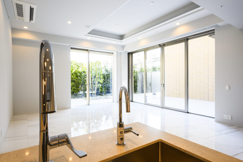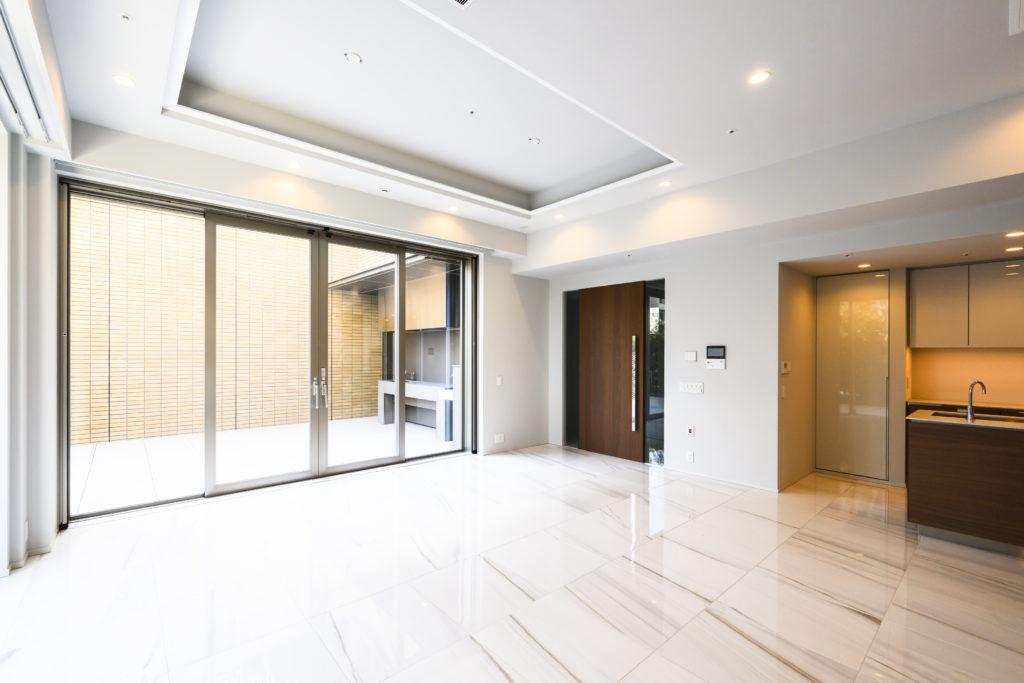 24畳のリビングダイニングには大理石のフロアタイル、折り上げ天井の間接照明など内装もこだわりのある最上級の仕様となっております。