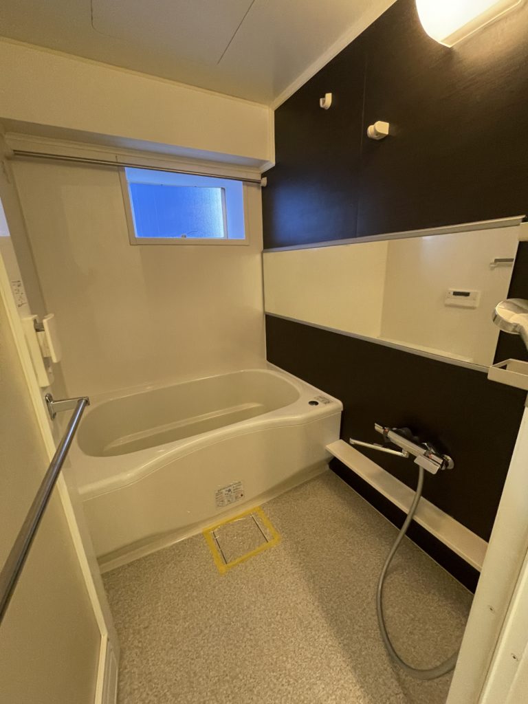 リフォームされ新しくなったバスルームは落ち着いたカラーリング。窓があるので換気もできいつでも気持ちよくお風呂に入れます。