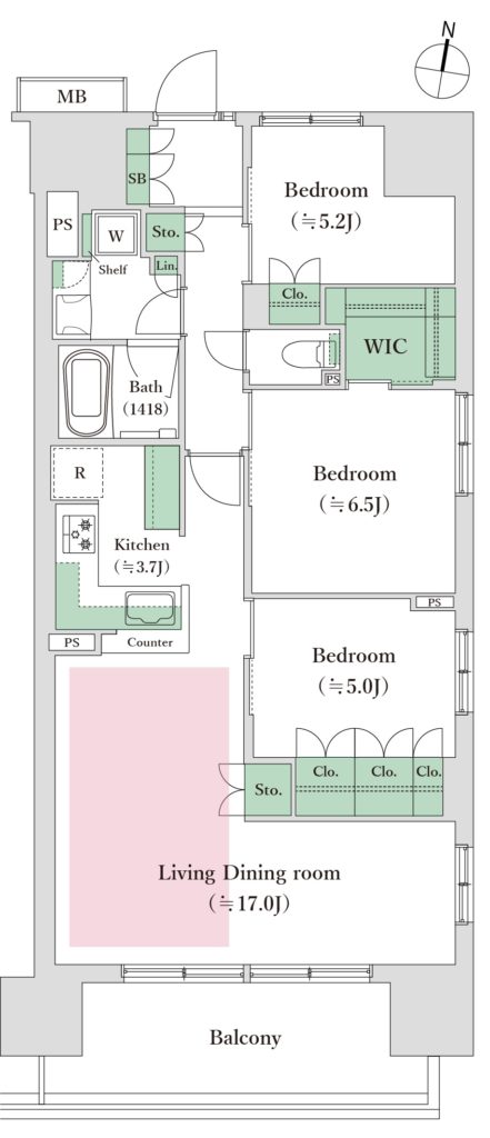 間取り:3LDK(LDK20.7帖/洋室6.5帖/洋室5.2帖/洋室5.0帖)