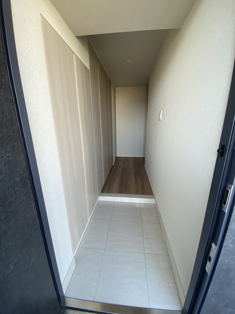 玄関を入ると壁面収納がならび書類や日用品などのストックも使い勝手良く収納できます。