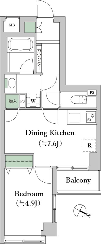 間取り:1DK(DK7.6畳/洋室4.9畳)