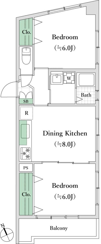 間取り:2DK(DK8畳/洋室6畳/洋室6畳)