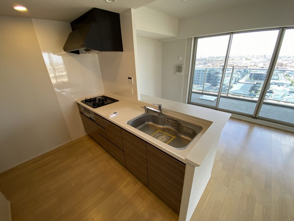カウンターのある対面式のオープンキッチンは広々とした家事導線を考慮したレイアウト。ディスポーザーや食洗機、浄水器など快適で機能的な設備も備わっております。