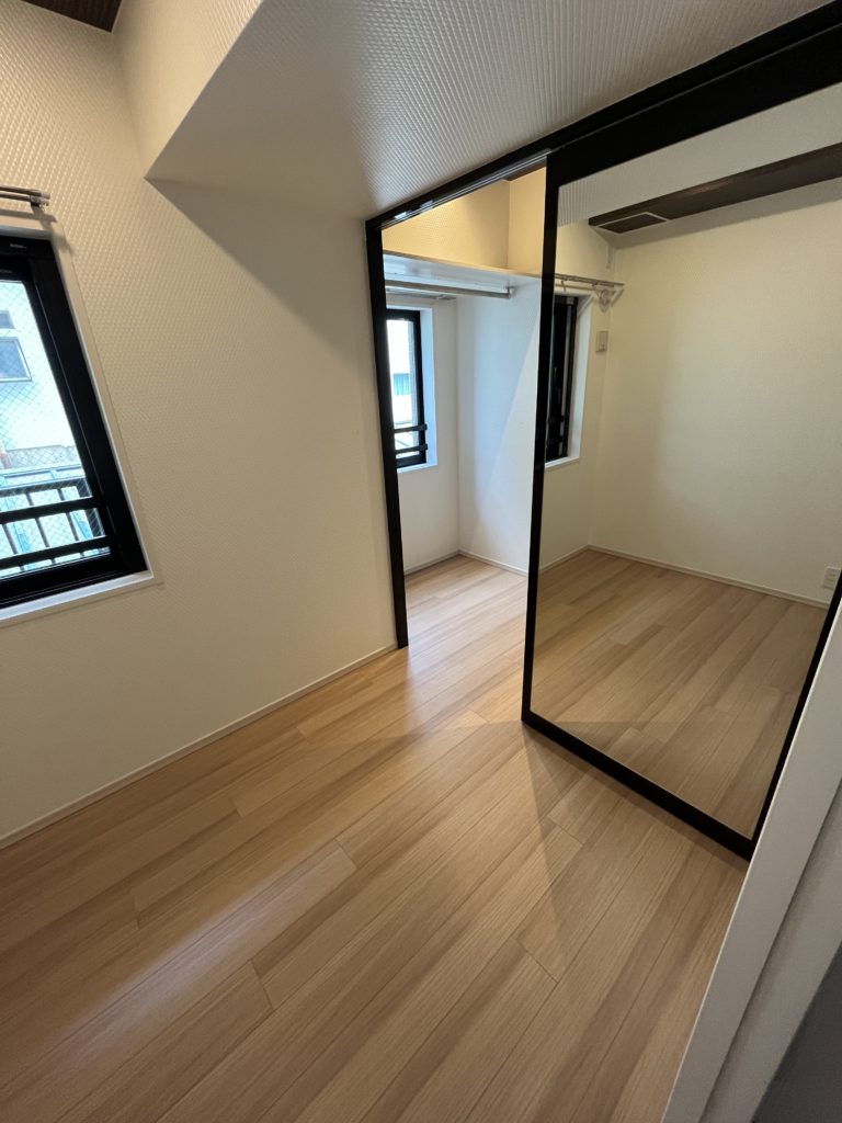 洋室のウォークインクローゼットはミラーのスライドドアで毎日の身支度もスムーズです。