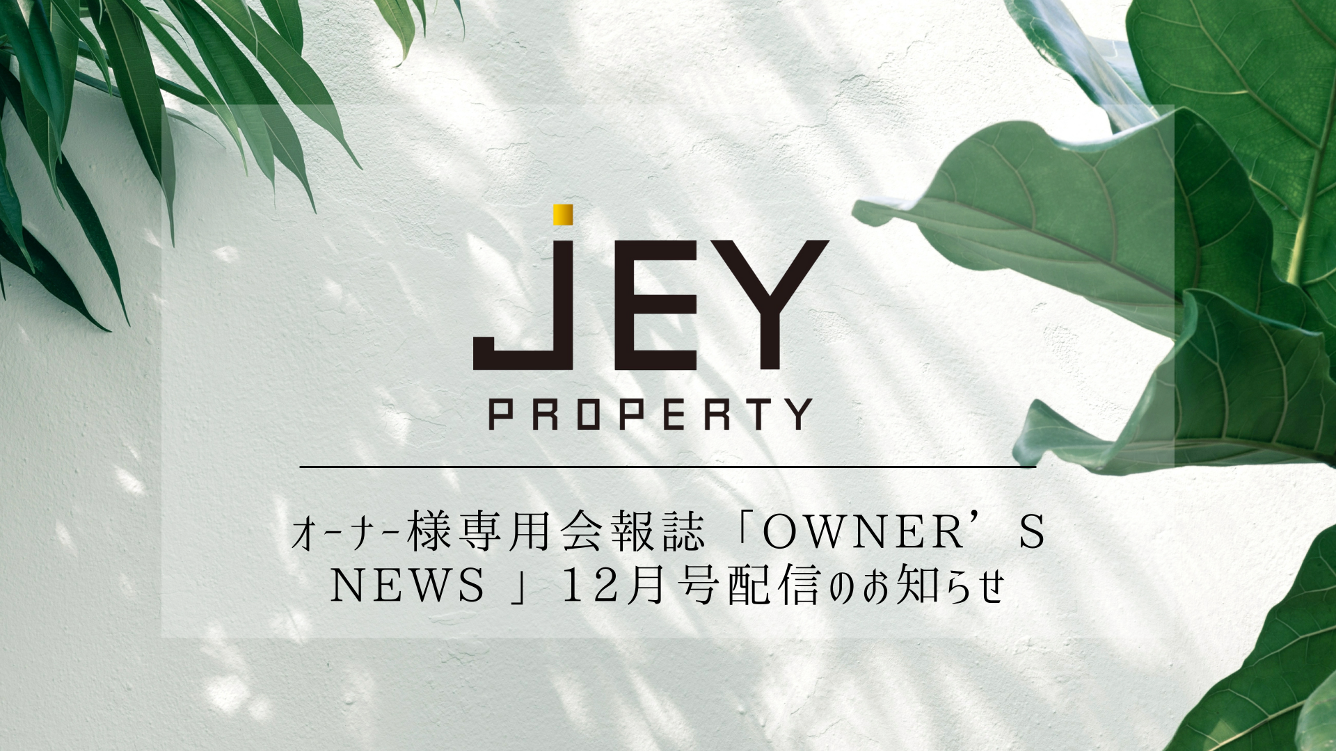 ◤オーナー様専用会報誌「OWNER’S NEWS 」12月号配信のお知らせ◢